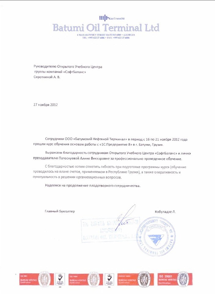 В процессе обучения ваши сотрудники будут снабжены сертифицированными методическими материалами, по окончании – каждый из них получит свидетельство фирмы "1С" о прохождении учебного курса.