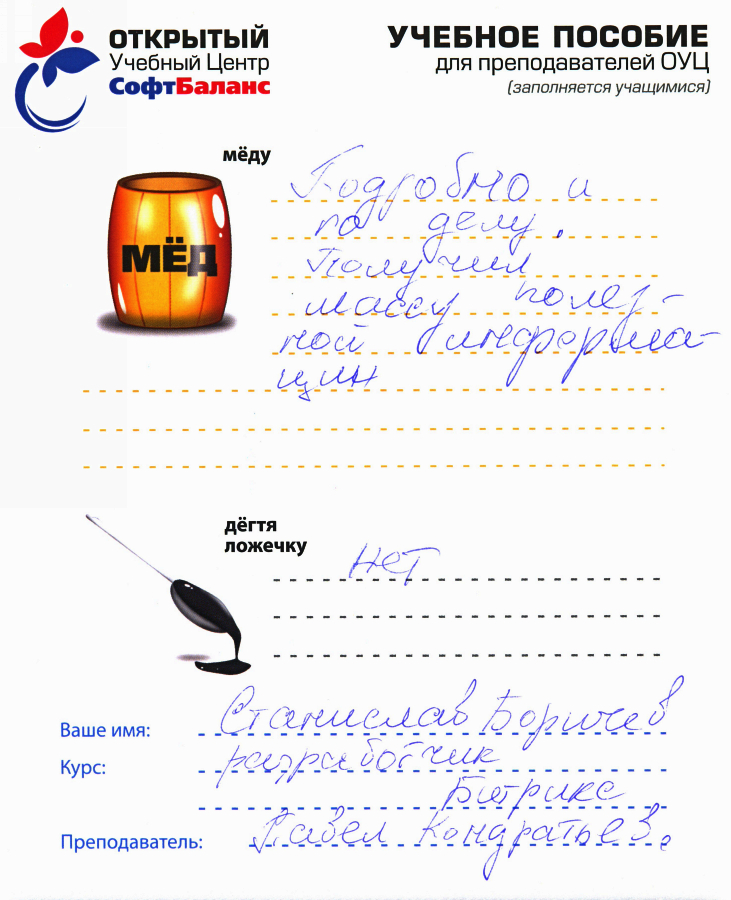 В Санкт-Петербурге на текущий момент данный курс можно пройти только в Открытом Учебном Центре "СофтБаланс".
